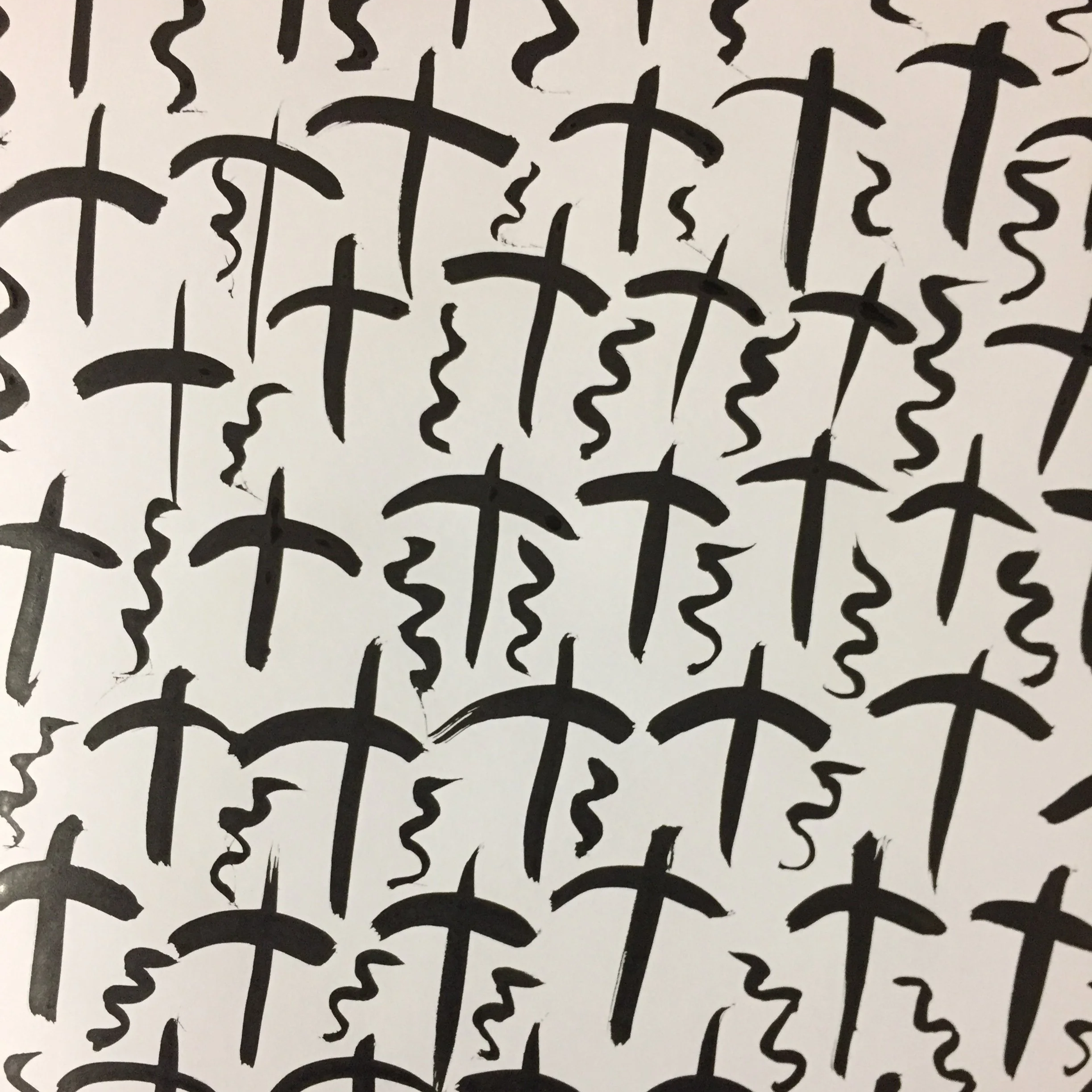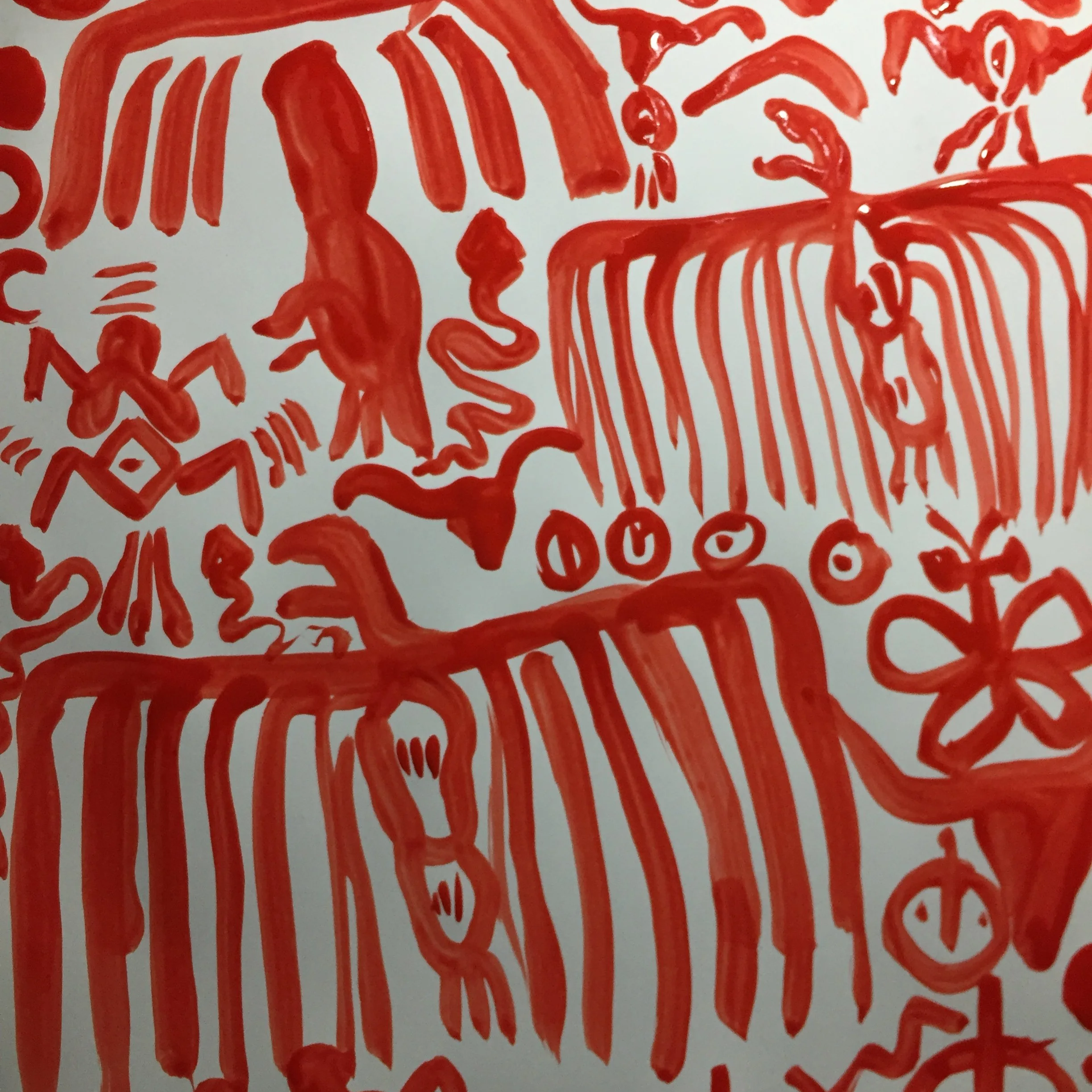 That year I drew image after image of snakes, birds, and flying snakes; of bulls heads and horns; of eight pointed stars, diamond chevrons, and zig zags; of antlered goddesses coming out of a diamond network pattern; of women holding a snake in each hand; of stylized women giving birth out of chevron shaped vaginal portals. I created an installation called Womb as Tomb, Tomb as Womb – a red painted earthen-like cave passage, that people could walk through and pause within.